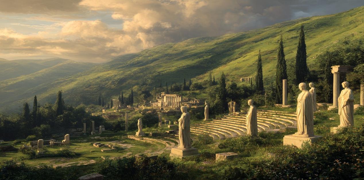 Ο Απόλλωνας και οι Εννέα Μούσες στον Ελικώνα, πηγή έμπνευσης για την αρχαία ελληνική τέχνη και ποίηση.